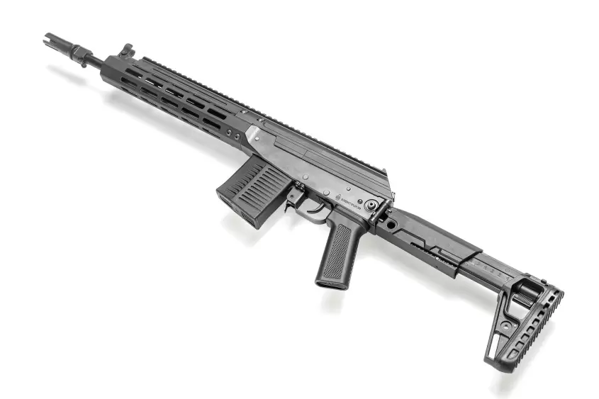 Эргономичность и удобство: Вывешенное цевье, фрезерованное из алюминиевого сплава, оснащено посадочными местами стандарта M-LOK для монтажа сошек, осветительных приборов и других аксессуаров. Стандартизированный с АК100 узел складывания приклада с блокиратором УСМ в сложенном состоянии обеспечивает удобство транспортировки и хранения, соблюдая при этом требования закона “Об оружии”. Приклад AK EVO производства Концерн Калашников и пистолетная рукоятка SAG SL AK с эргономичным углом обеспечивают комфортный хват и управление карабином.